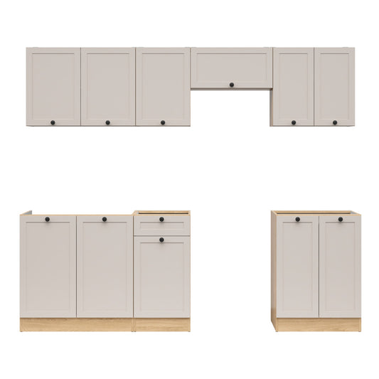 Summer 7 Unit Kitchen Cabinets Set 230cm - Cashmere Matt / Bernstein Oak