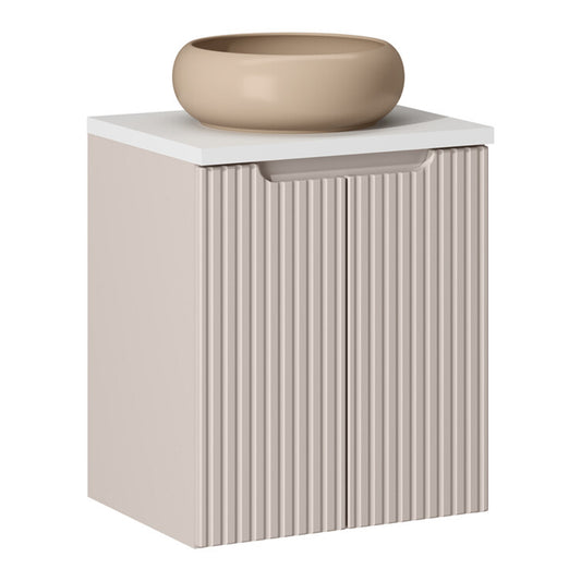 Noca Bathroom Cabinet with Doors 50cm with White Worktop and Countertop Basin – Cashmere