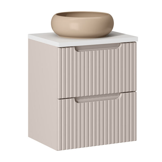 Noca Bathroom Cabinet with Drawers 50cm with White Worktop and Countertop Basin – Cashmere