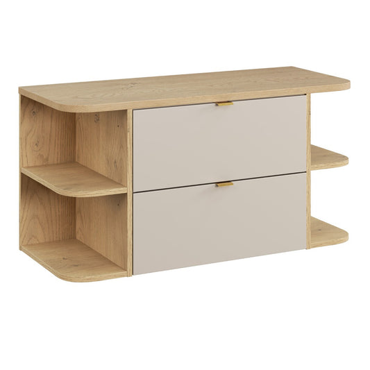 Dalia 2 Drawer Bathroom Cabinet Vanity Unit 100cm with Worktop and Two Rounded Open Shelves - Cashmere / Cremona Oak