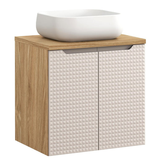 Luxor 3D Diamond Pattern 2 Door Bathroom Vanity Cabinet with Square Worktop Basin 60cm - Oak / Beige