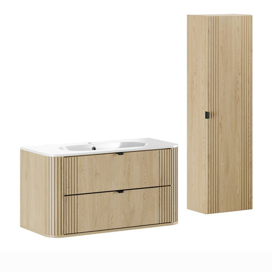 Ovalia Bathroom Set 100cm with Basin and Tall Unit - Cremona