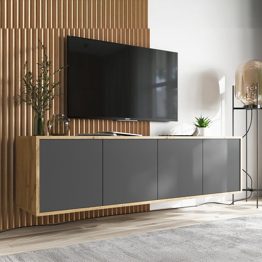 Apollo Modern Wall-Mounted TV Unit with 4 Door Design 150 cm – Grey / Oak Wotan