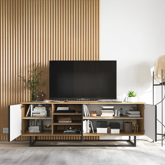 Apollo Modern TV Unit with 4-Door Design and Metal Base 150 cm – White / Oak Wotan