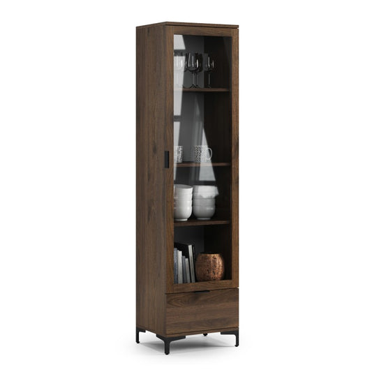 Lana Modern Display Cabinet with Glass Door and Drawer – Elegant Walnut