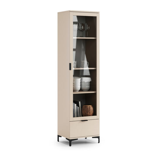Lana Modern Display Cabinet with Glass Door and Drawer – Beige
