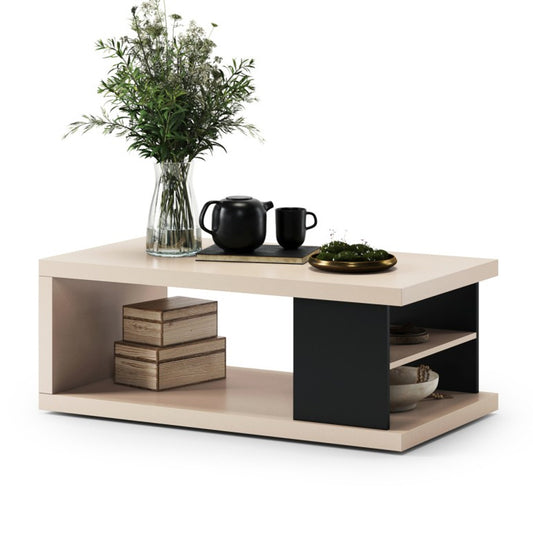 Lana Modern Coffee Table with Open Storage Shelves – Beige