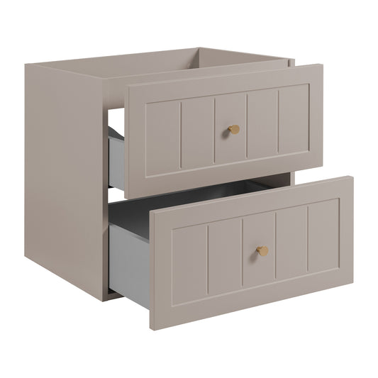 Gusto Scandi Style 2 Drawer Wall Cabinet Vanity Unit 60cm with Worktop Basin - Cashmere