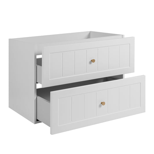 Gusto Scandi Style 2 Drawer Wall Cabinet Vanity Unit 80cm with Worktop Basin - White