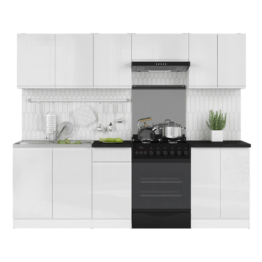 Summer 7 Unit Handleless Kitchen Cabinets Set 240cm - White Gloss