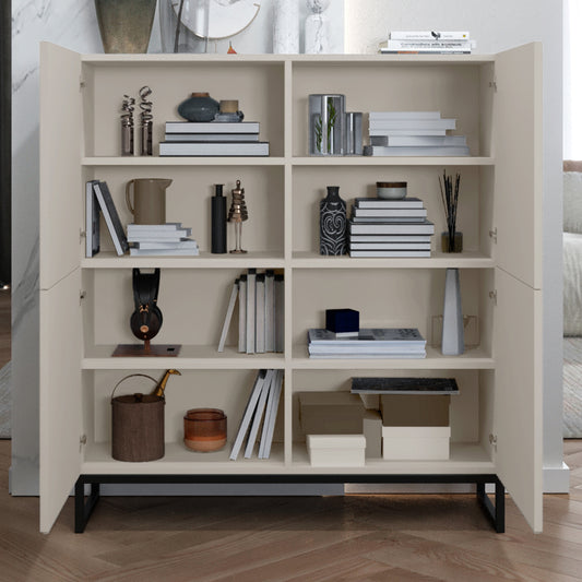 Elpis Glamour 4 Door Sideboard Push-to-Open Cabinet - Cashmere Matt / Black Frame