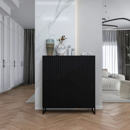 Elpis Glamour Coffee Table with Storage 110 cm - Black Matt / Black Frame