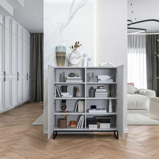 Elpis Glamour 4 Door Sideboard Push-to-Open Cabinet - White Matt / Black Frame