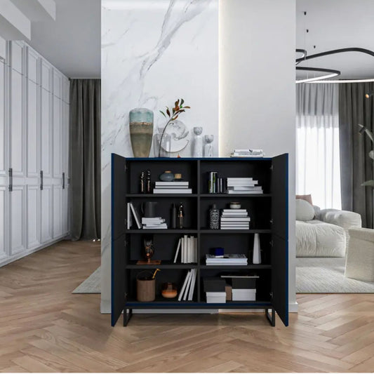 Elpis Glamour 4 Door Sideboard Push-to-Open Cabinet - Navy Matt / Black Frame