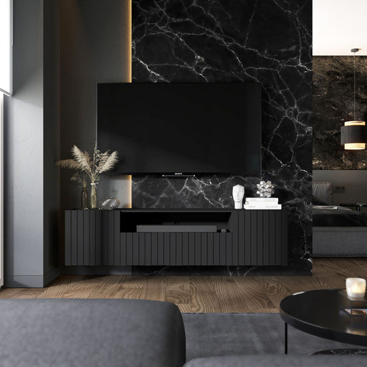 Elpis Glamour Wall-Mounted TV Cabinet with Storage 4D 150cm - Black Matt
