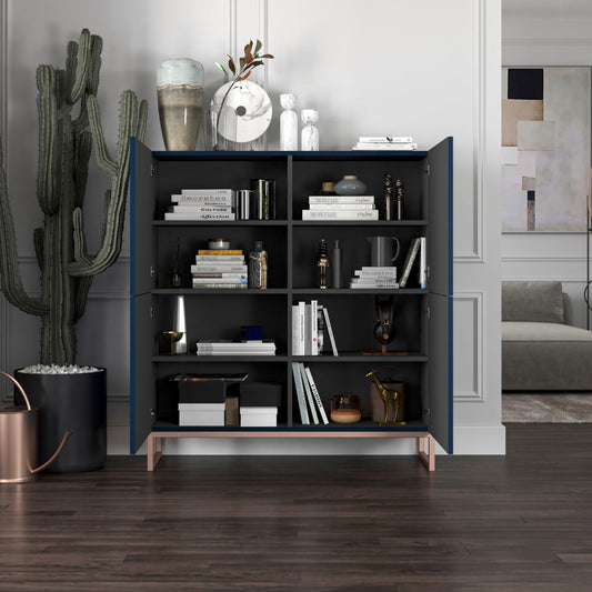 Elpis Glamour 4 Door Sideboard Push-to-Open Cabinet - Navy Matt / Copper Frame