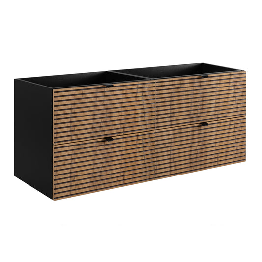 Loft Modern Style Ribbed Door 140cm Bathroom Cabinet Vanity Unit with Worktop - Gold Craft Oak