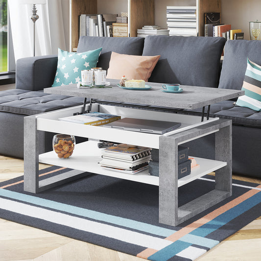 NUO Lift Top Coffee Table Contemporary Style - Concrete / White Matt