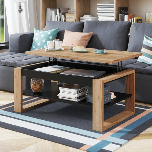 NUO Lift Top Coffee Table Contemporary Style - Gold Craft Oak / Black Matt