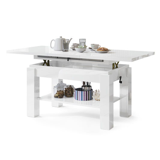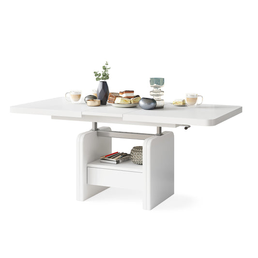 Alva 2 in 1 Extending Coffee / Dining Table 110-150cm - White Gloss