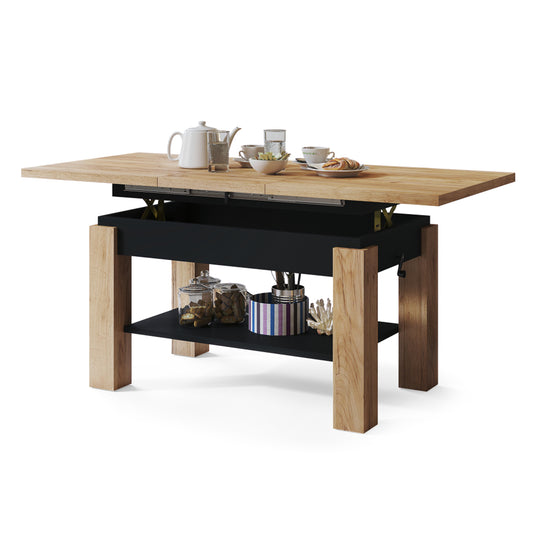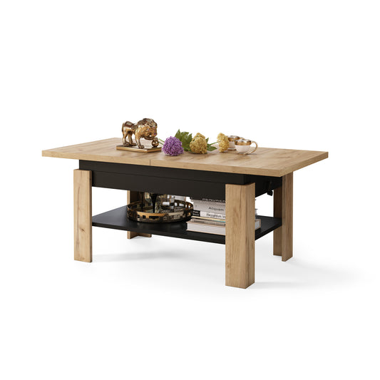 Alva 2 in 1 Extending Coffee / Dining Table 110-150cm - Gold Craft Oak / Black