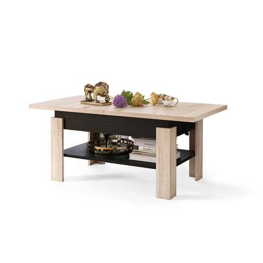 Runa 2 in 1 Extending Coffee / Dining Table 130-170cm - Sonoma Oak / Black