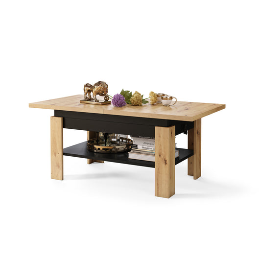 Runa 2 in 1 Extending Coffee / Dining Table 130-170cm - Artisan Oak / Black