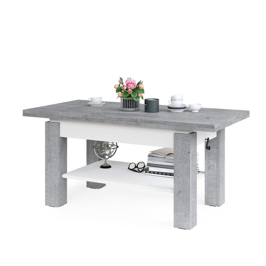 Gala 2 in 1 Extending Coffee / Dining Table - Concrete / White