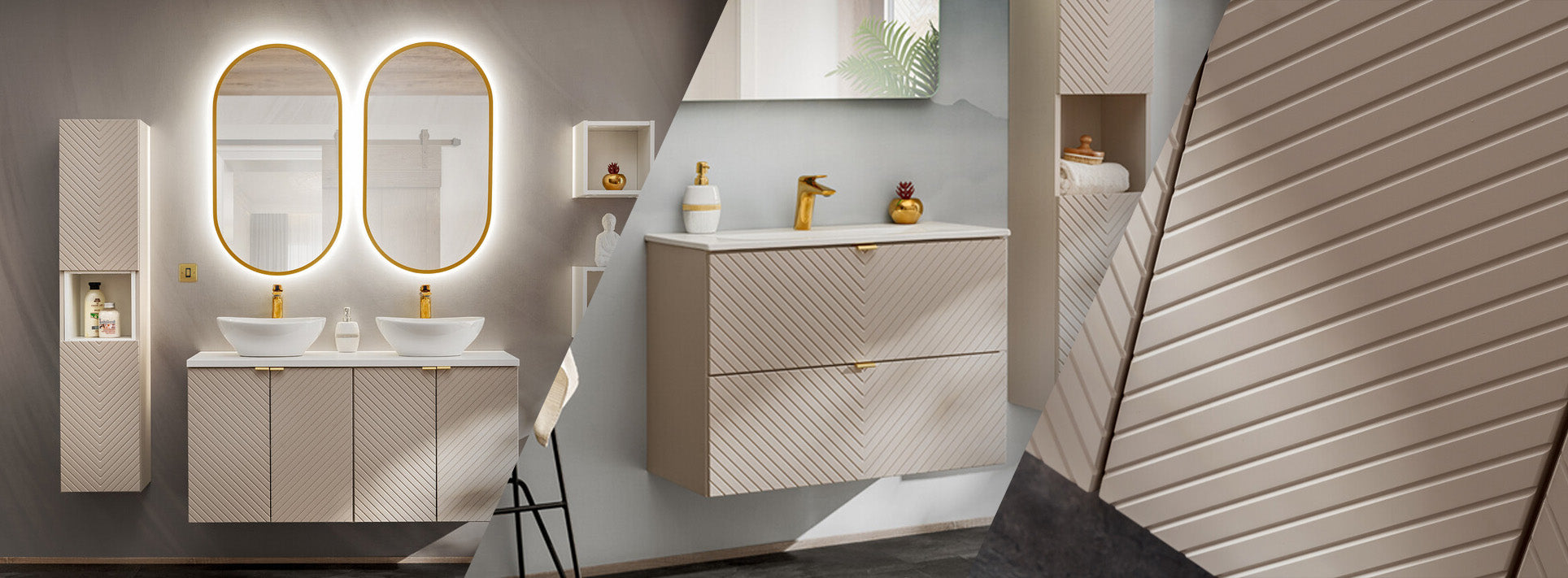The Viva Cashmere Collection is designed for those who appreciate unique design and the subtlety of fine details. The depth of cashmere color and the three-dimensional, chevron-patterned fronts create an intriguing accent, bringing character and elegance to any interior.