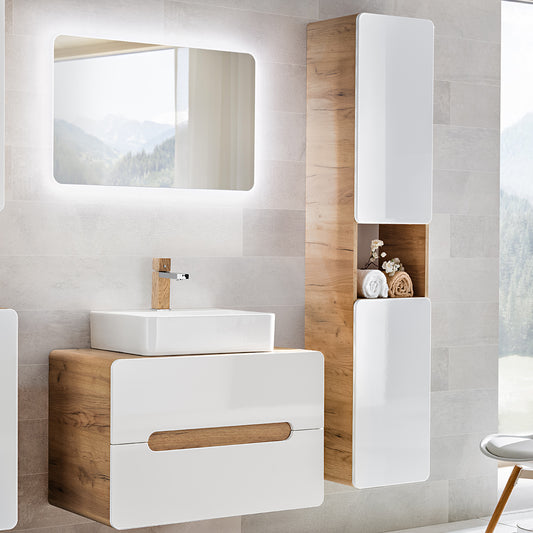 Aruba Nowoczesna Wisząca Wysoka Szafka Łazienkowa – Biały / Dąb Craft