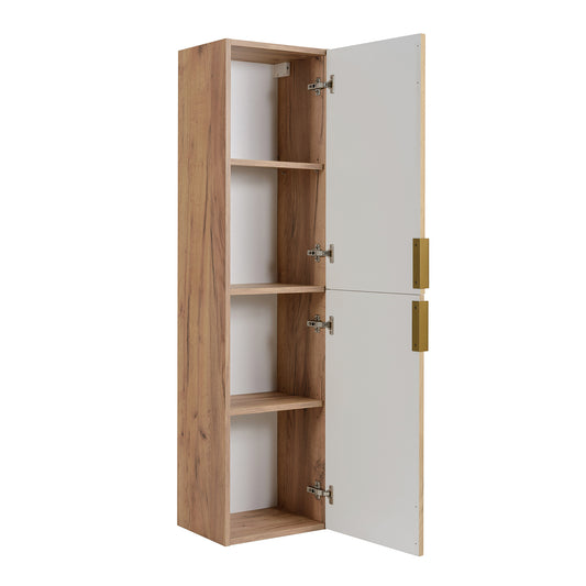 Flow Wall-Mounted Tall Bathroom Cabinet 136cm - Gold Craft Oak