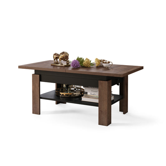 Clara 2 in 1 Extending Coffee / Dining Table 75-150cm - Brown Oak / Black
