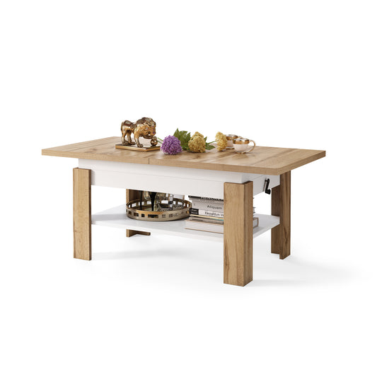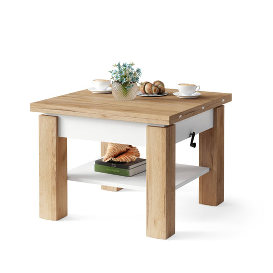 Clara 2 in 1 Extending Coffee / Dining Table 75-150cm - Golden Craft Oak / White
