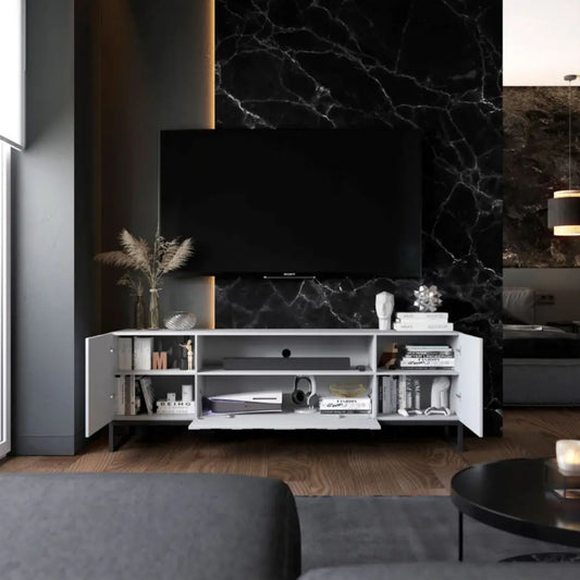 Szafka RTV Elpis – Biały z czarnymi nóżkami