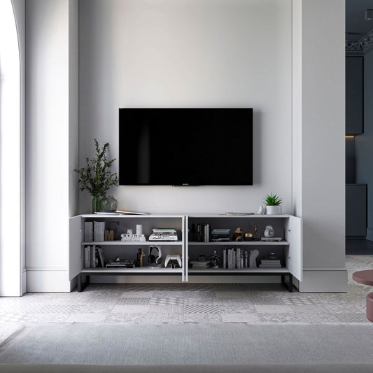 Komoda RTV Glamour ELPIS – Bezuchwytowa z Regulowanymi Półkami Biały Mat
