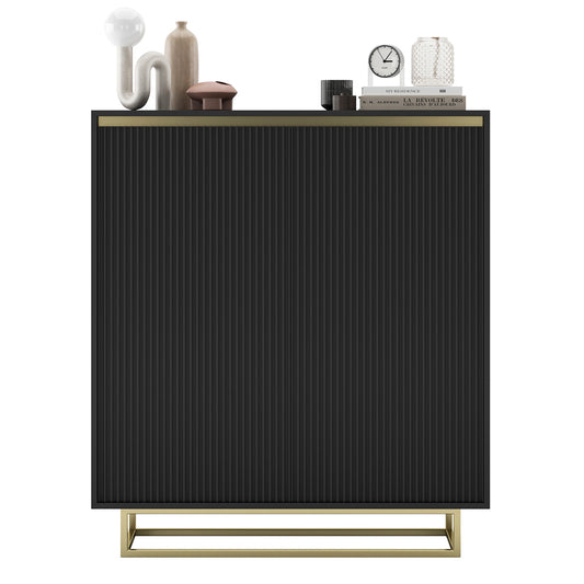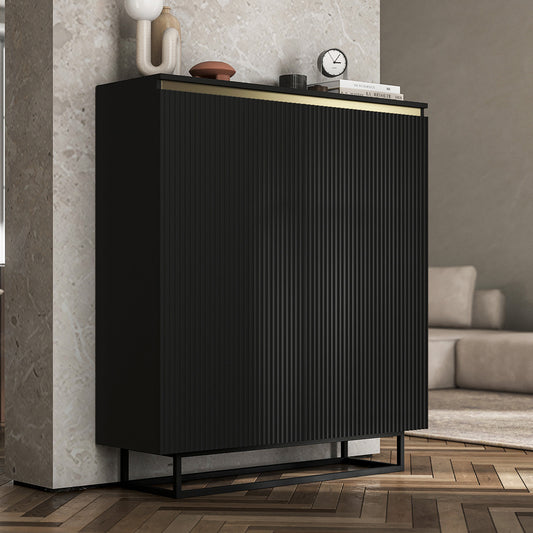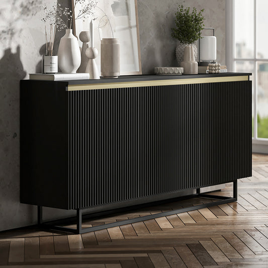 Selene Nowoczesna Wisząca Szafka RTV z Ryflowanym Frontem i Schowkiem – Czarny / Złota Rama