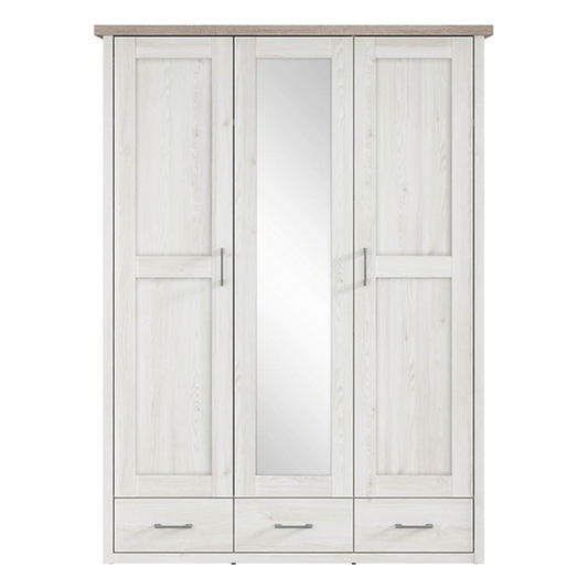 Loca Szafa trzydrzwiowa z Lustrem i Szufladami – Modrzew Sibiu / Ciemny Dąb Sonoma