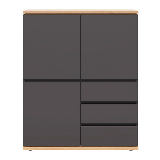 Yodi Komoda 100 cm z 3 drzwiami i szufladami – Grafit / Dąb Artisan