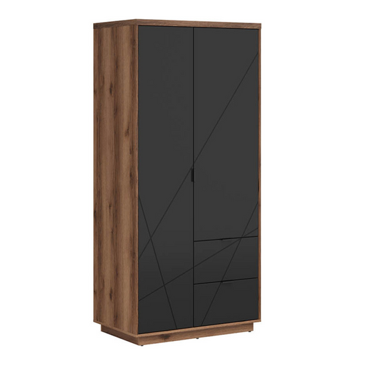 Faisa Szafa 2-drzwiowa z Szufladami – Ciemny Dąb Delano / Czarny Mat