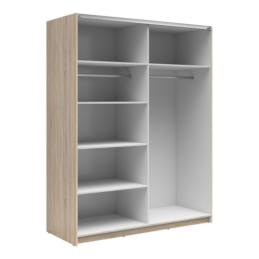 Exter Szafa 2-Drzwiowa Przesuwna 153 cm – Dąb Sonoma / Biały Połysk