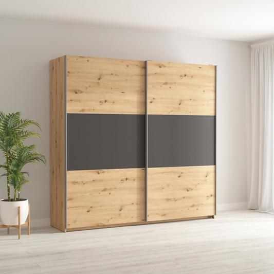 Ares Szafa Przesuwna 2-drzwiowa 218 cm – Dąb Artisan / Grafit