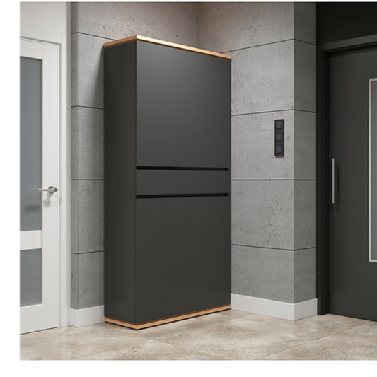 Yodi Szafa do Przedpokoju 90 cm z 4 drzwiami i szufladą – Grafit / Dąb Artisan