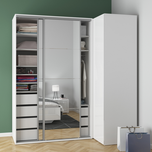 Flexi Szafa Narożna z Lustrem – Biała