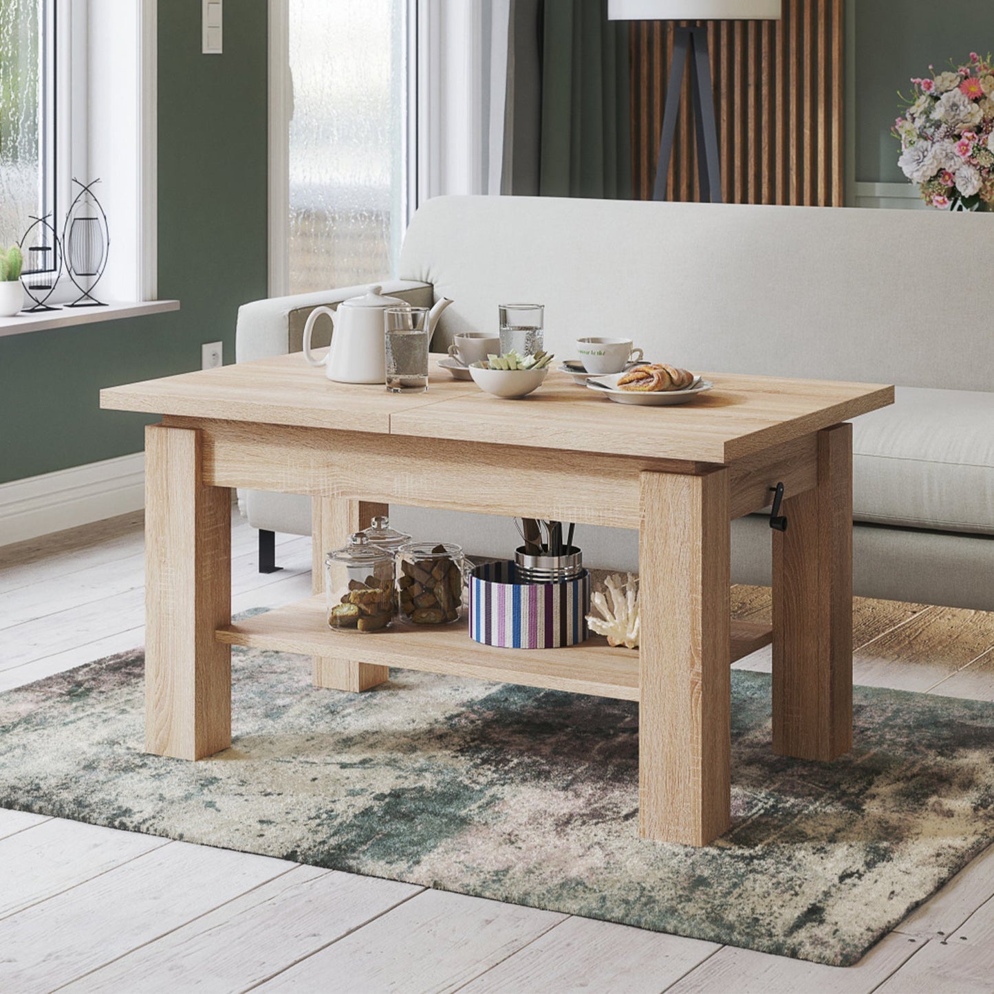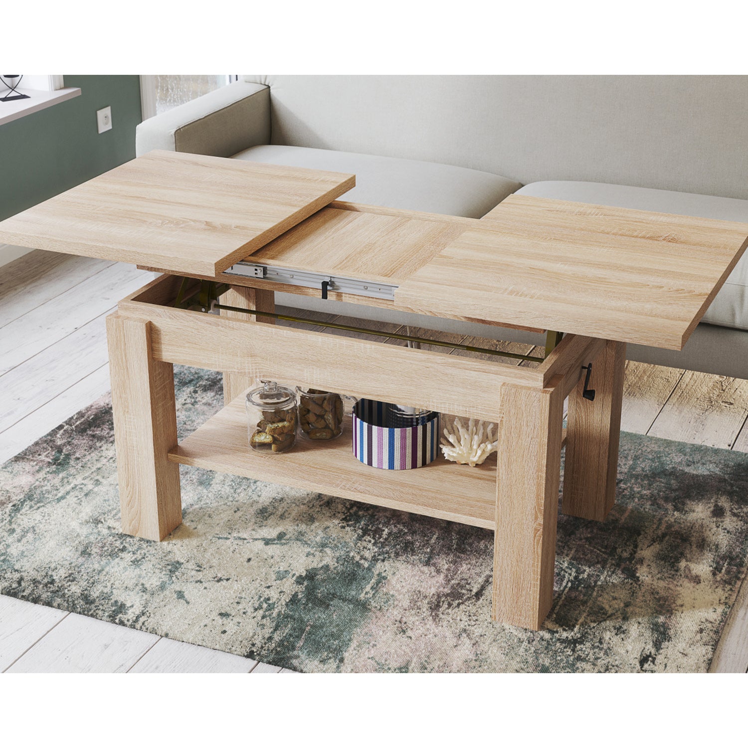 The Extending coffee table Alva is a versatile and stylish addition to any living space. Crafted with exquisite attention to detail, this coffee table seamlessly combines functionality with modern design. Its sleek, minimalist silhouette enhances the aesthetic appeal of your home while providing ample storage and surface space. Featuring a unique extending mechanism, this coffee table effortlessly transforms from a compact size to a larger surface area, adapting to your specific needs. Whether you're hosting a gathering or simply enjoying a cozy evening in, the Alva coffee table ensures convenience and versatility. Constructed from high-quality materials, this coffee table is built to last. Its sturdy frame and durable finish make it resistant to everyday wear and tear, ensuring long-lasting performance. The Alva coffee table is designed to withstand the demands of daily use, making it an ideal investment for your home.