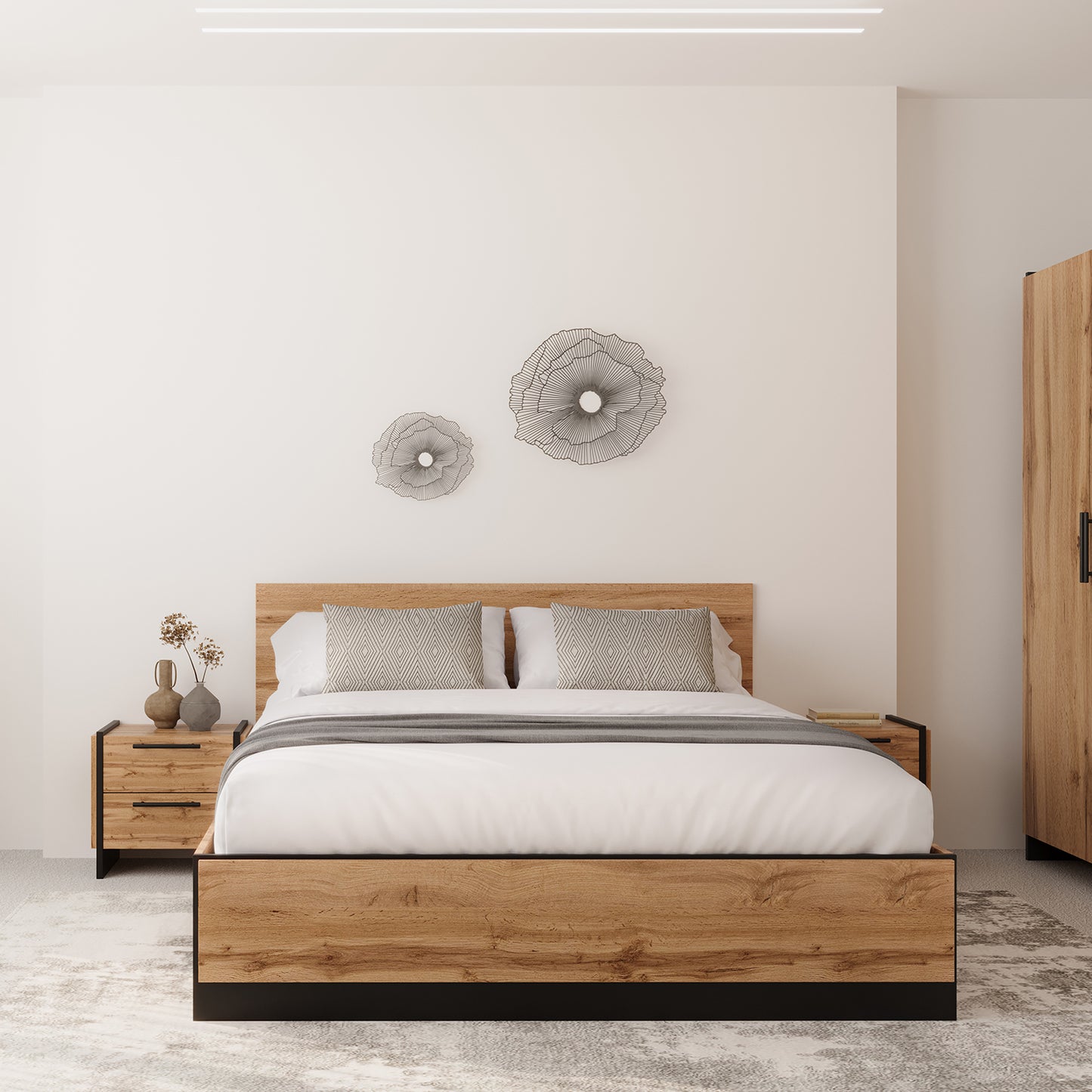 Łóżko Amino to idealne połączenie wygody, stylu i trwałości. Ciepły odcień dębu wotan w zestawieniu z czarną wstawką dodaje wnętrzu charakteru i przytulności. Dzięki solidnej konstrukcji i wysokiej jakości materiałom, mebel posłuży przez lata, zapewniając spokojny i komfortowy sen.