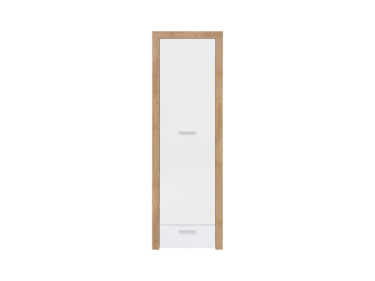 Regał zamknięty Balder to praktyczne i stylowe rozwiązanie, idealne do nowoczesnych wnętrz. Wyposażony w 3 półki za pełnym frontem i szufladę w dolnej części, ułatwia organizację i przechowywanie różnych przedmiotów. Geometryczny design z pogrubianymi listwami korpusu oraz wybarwienie ciepłego dąb riviera z białym połyskiem tworzą uniwersalny i elegancki wygląd. Markowe akcesoria i proste uchwyty zapewniają wygodę użytkowania. Doskonale komponuje się z innymi elementami kolekcji Balder, pozwalając na stworzenie spójnej aranżacji wnętrza.