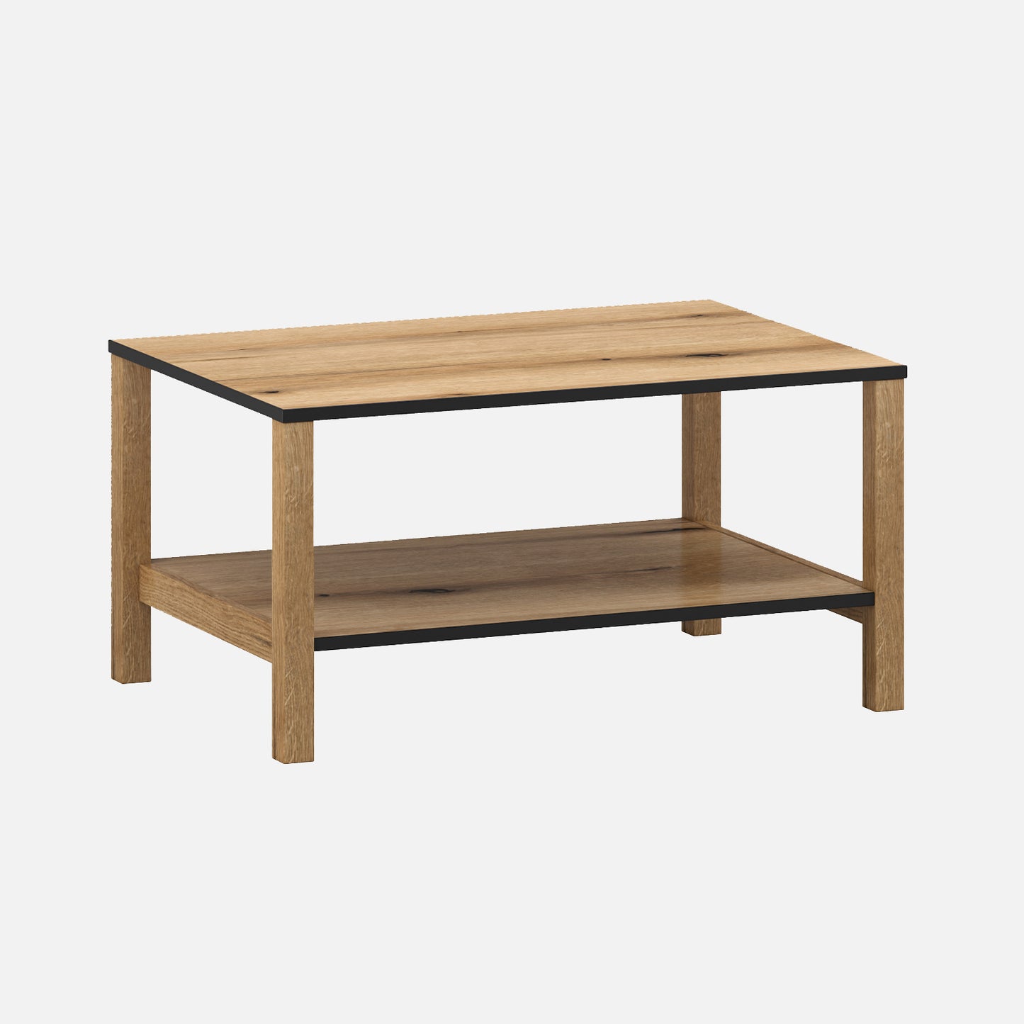 Ten stylowy stolik kawowy w wykończeniu dąb Evok i czerń doskonale sprawdzi się w nowoczesnym salonie. Przestronny blat idealnie nadaje się na napoje, książki i dekoracje, łącząc funkcjonalność z eleganckim wyglądem.