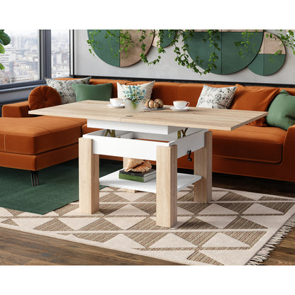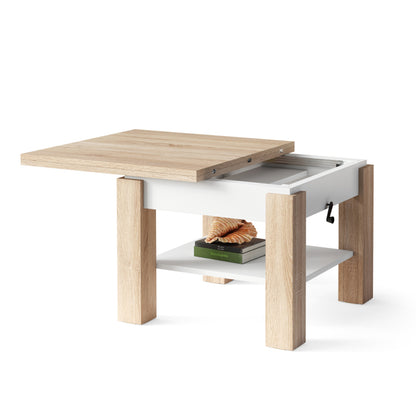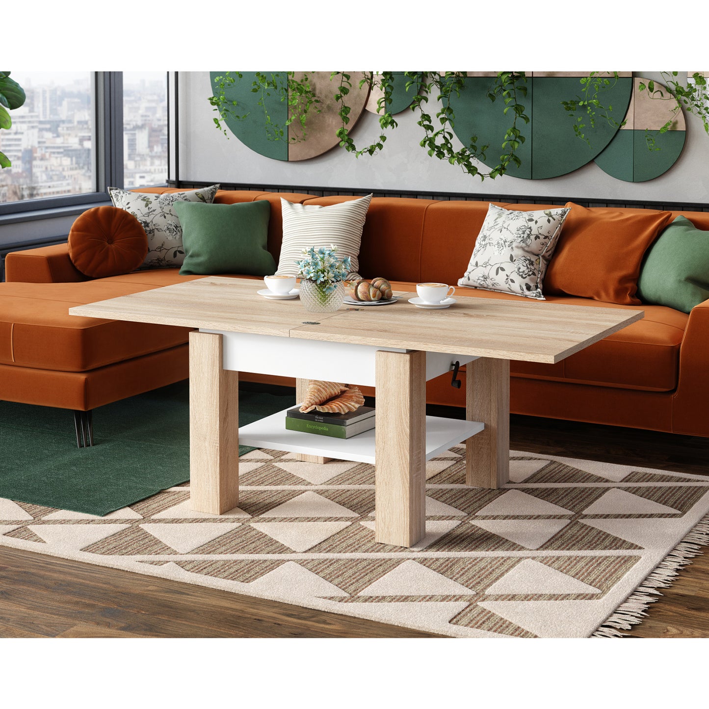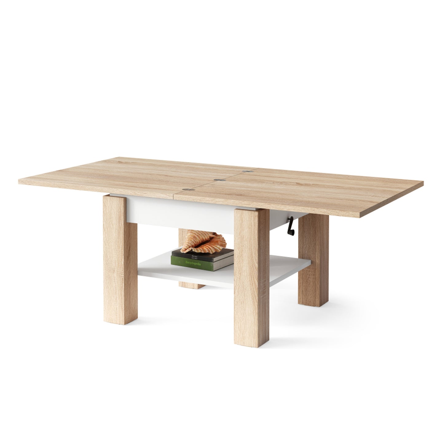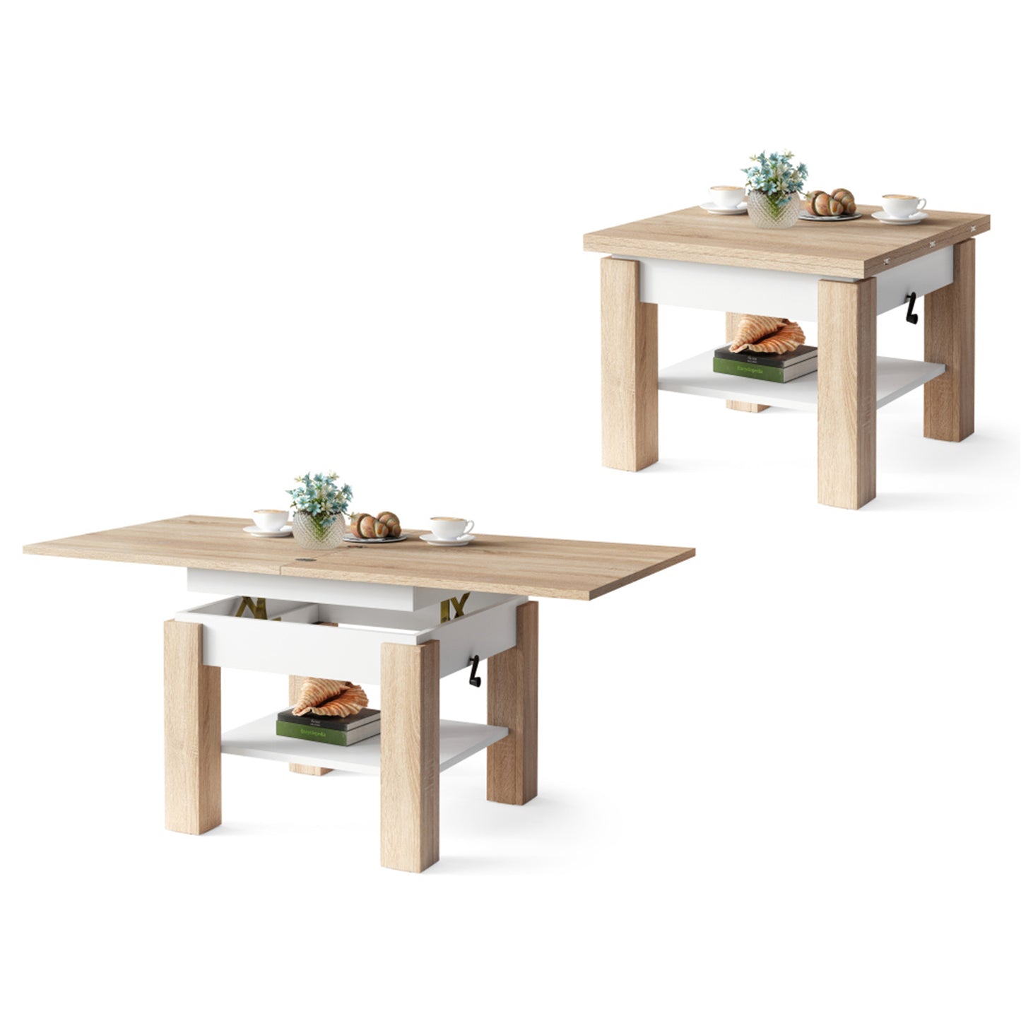 Clara 2 in 1 Extending Coffee / Dining Table 75-150cm - Sonoma Oak / White