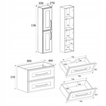 • Vanity Unit - Width: 80cm, Depth: 46cm, Height: 57cm