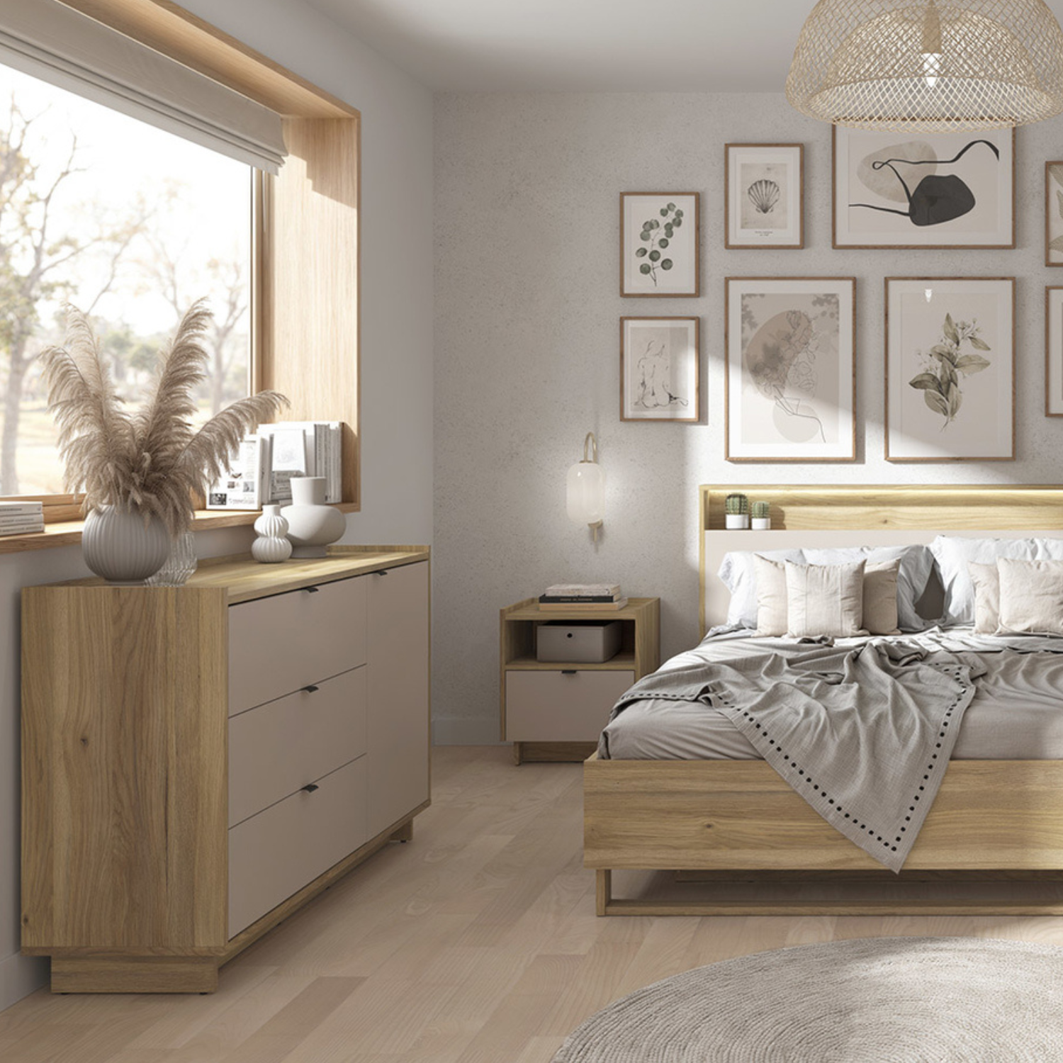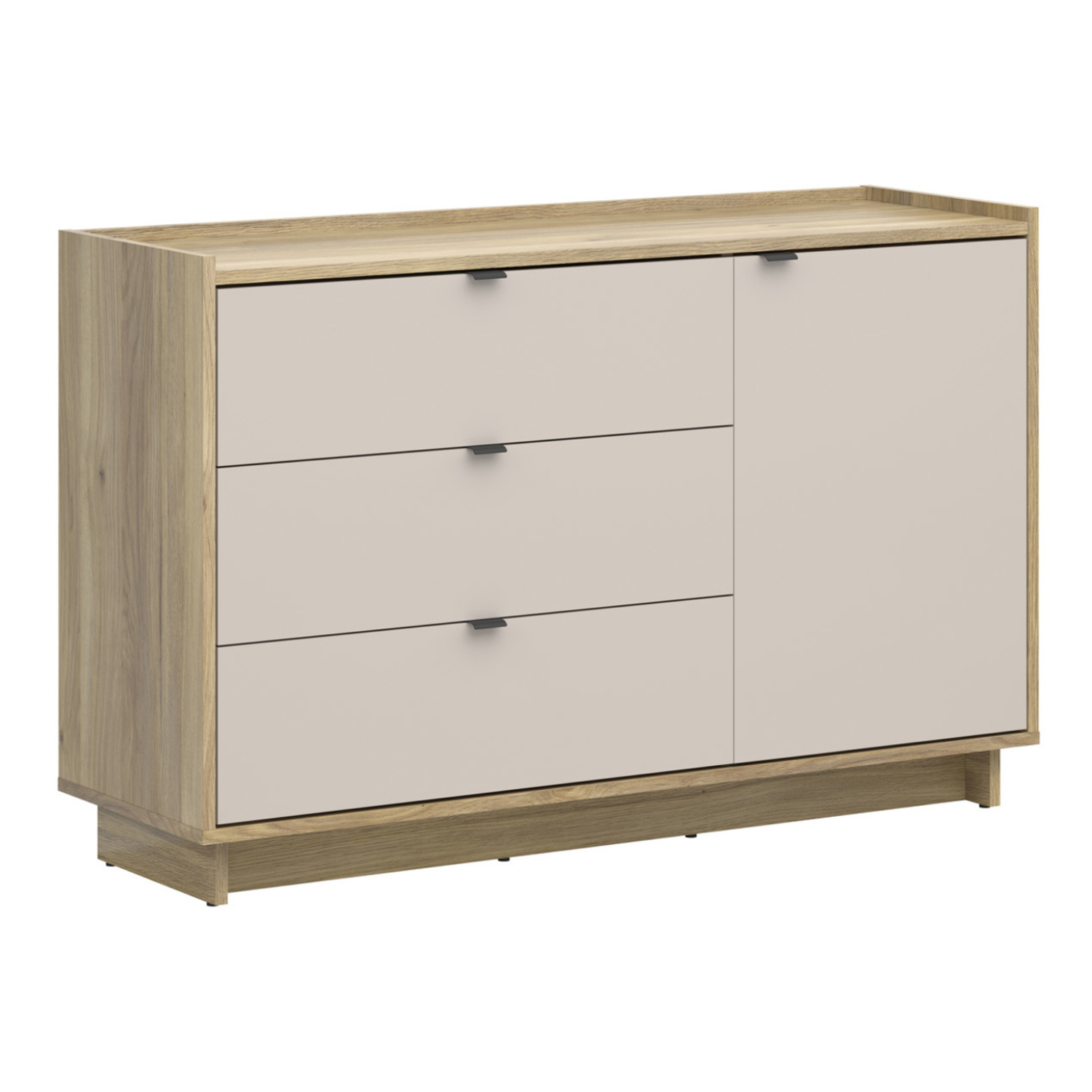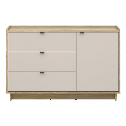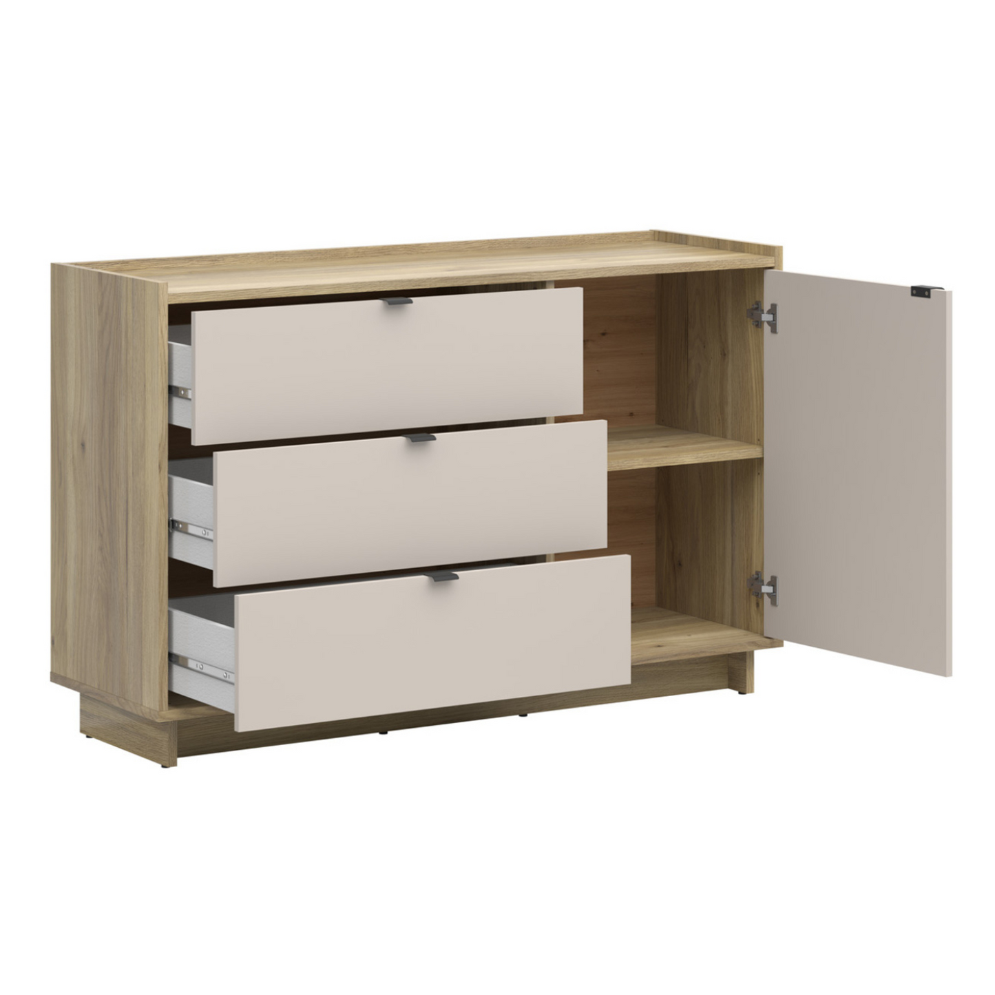 Komoda Davina 134 cm z drzwiami i 3 szufladami to stylowy i funkcjonalny wybór dla osób ceniących design inspirowany stylem Japandi oraz praktyczność. Wyposażona w przestronny układ trzech szuflad i dodatkowe półki za drzwiami, oferuje dużą przestrzeń do przechowywania, zapewniając porządek w pomieszczeniu. Wykonana z trwałej płyty meblowej, gwarantuje długowieczność i stabilność. Nowoczesne uchwyty aluminiowe dodają jej smukłego wyglądu, podkreślając wyrafinowaną estetykę. Doskonała dla osób, które cenią harmonijne połączenie współczesnego stylu i funkcjonalności.